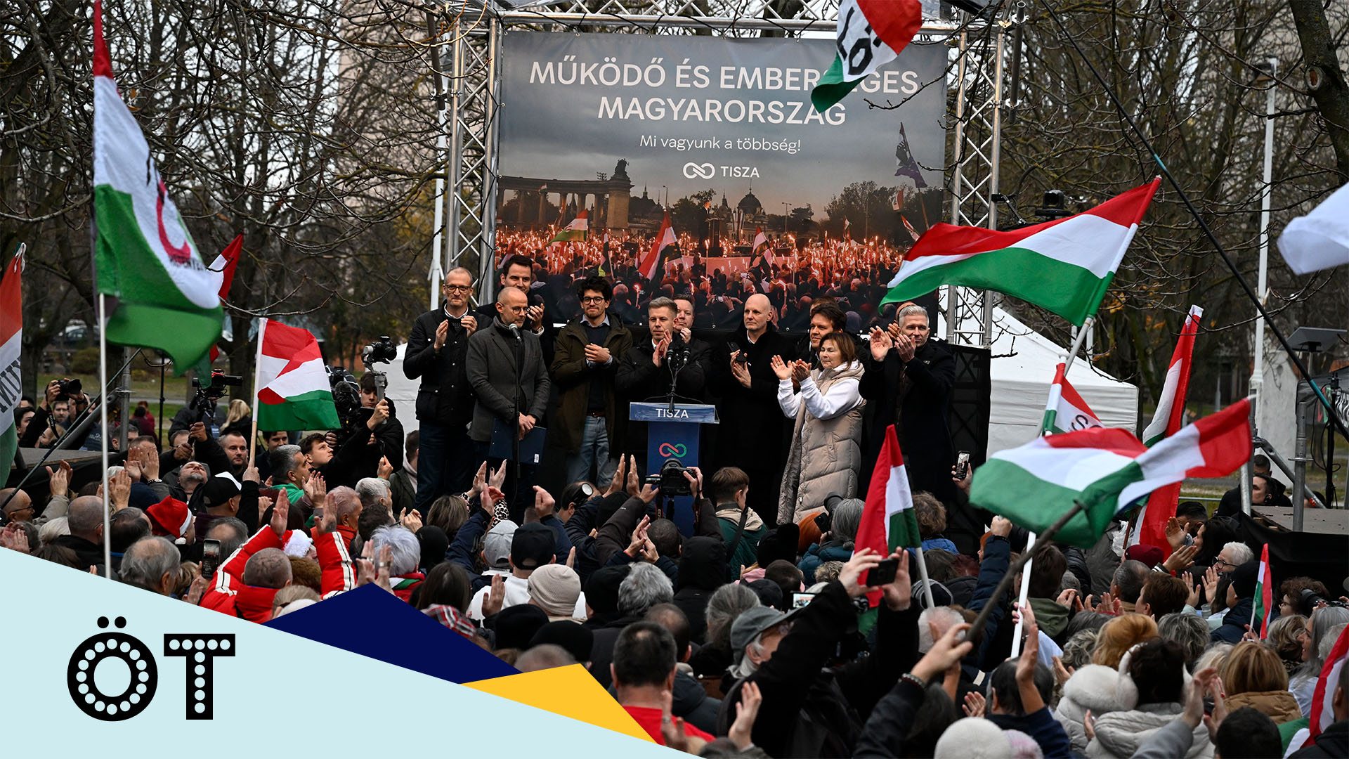 Borítókép: Magyar Péter, a Tisza Párt elnöke képviselőjelöltjeivel a párt országjárásának kecskeméti állomásán 2025. december 6-án / fotó: MTI/Vasvári Tamás