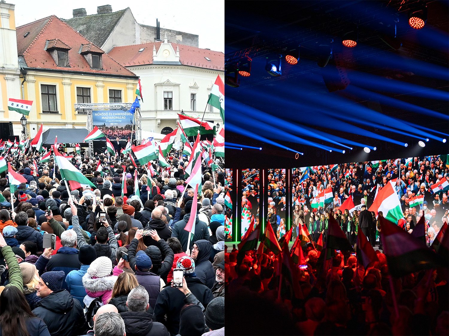 Borítókép: A Tisza párt győri rendezvénye, és a digitális polgári körök által szervezett háborúellenes gyűlés 2025. november 15-én, Győrben / fotó: MTI/Krizsán Csaba/Fischer László