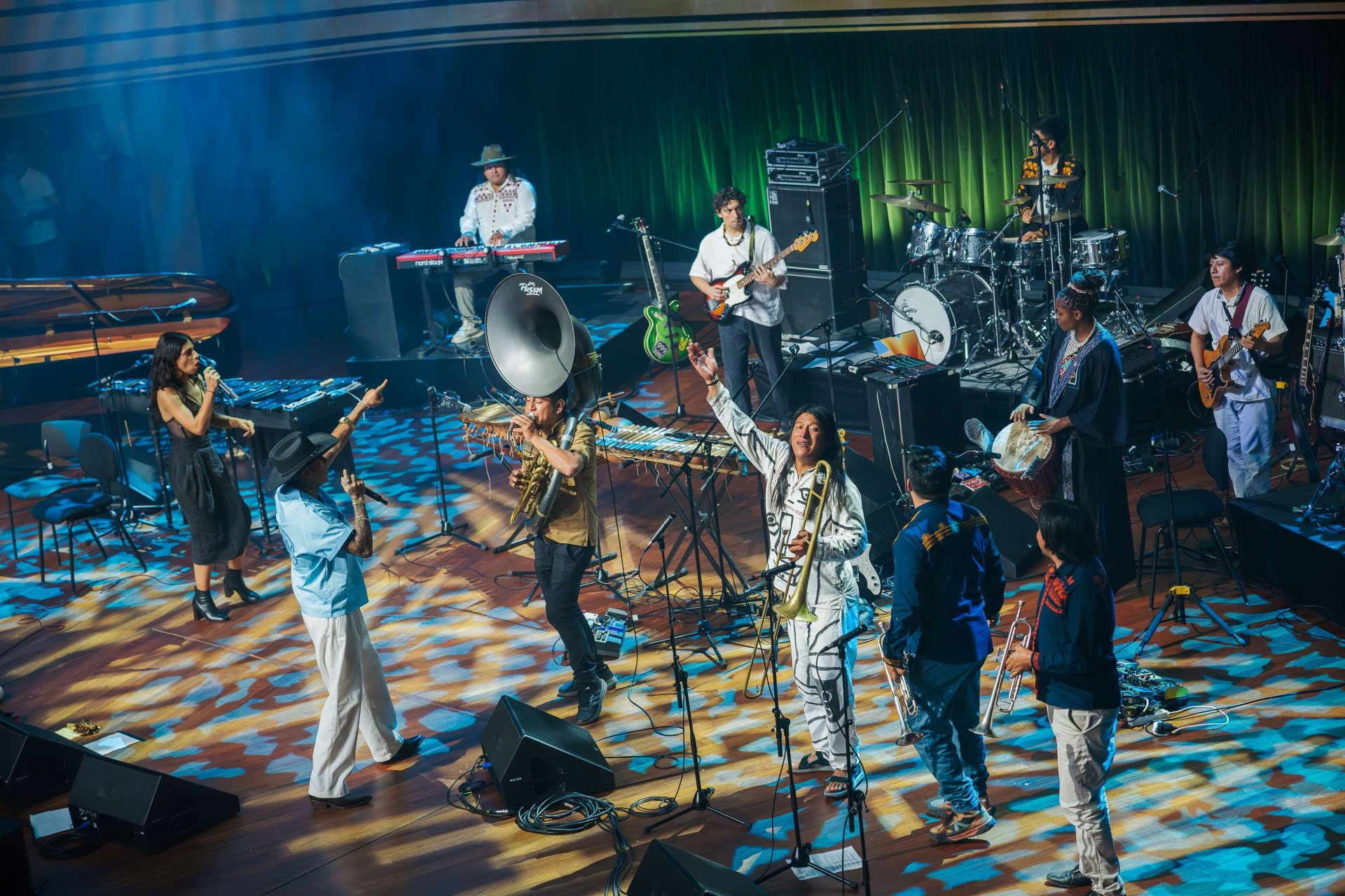 Arra azonban ez az este is felhívja a figyelmünket, ha különféle kulturális tartalmakat öntünk egybe, az még nem garancia a minőségre. A multikulti sincs meg jó dalok nélkül. Még a mexikói rezesekkel táncba hívó világzenei lakodalmas sem. Voltak persze remek pillanatok: az Imarhan-frontember, Sadam, a Joan As a Police Women néven zenélő, ezen az estén főleg hegedűn játszó Joan Wasser, valamint Damon Albarn közös desert blues-dala például egészen elragadó és felemelő volt, de emlékezetesek voltak az afro-hiphopos percek, nehezen felejthető a dél-afrikai Moonlight Sanelly színpadra lépése, vagy a búgó baritonnal bájoló mexikói transznemű énekesnő, Luisa Almaguer figurája és egynémely produkciója sem. Utóbbiról jegyezte meg mögöttem egy néző, hogy milyen jó lenne egy Almodóvar-filmben. Egyetértek, és emelem: én egy David Lynch-moziban is bírnám, kár hogy itt már csak visszamenőleg működhet a képzelet. És akkor ott volt még a kalapos madárijesztőre emlékeztető Jupiter Bokondji, akiről az ember egyszerűen csak nem tudta levenni a szemét.