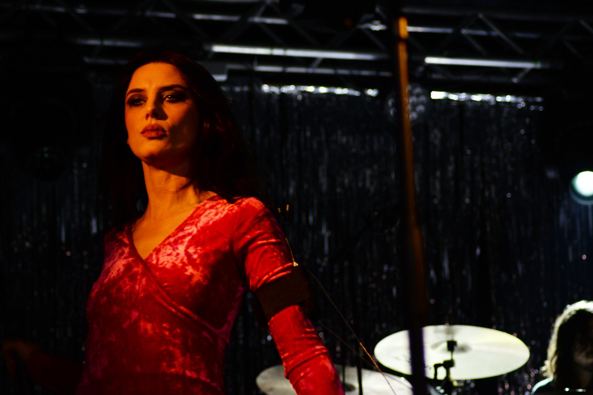 A koncert kiszerelése is nagyon hetvenes évek. Mint valami tévésó. Egy ezüstcsíkokból álló függöny a színpad hátulján, azt világítják meg vörös, lila, rózsaszín, meg zöld fényekkel. A színpad rendezői jobbján, emelvényen a dobos – manapság már tiszta snassz a színpad közepére tenni a dobfelszerelést –, baloldalon a szintis-zongorista, középen pedig a fronthősnő-díva helye, mint egy revüműsorban, oda áll be a koncert kezdetén, a gitáros és a basszusgitáros pedig egy félemelettel lejjebb, a színpad két oldalán. Rowsell művésznő tornadresszre emlékeztető szexis szetben performál (nem tudom a ruhadarab pontos szakkifejezését, a megfejtéseket a szerkesztőség címére várjuk), de a többiek is stilóban vannak: mai divat, korabeli – mármint a hetvenes évekre hajazó – kikacsintással.