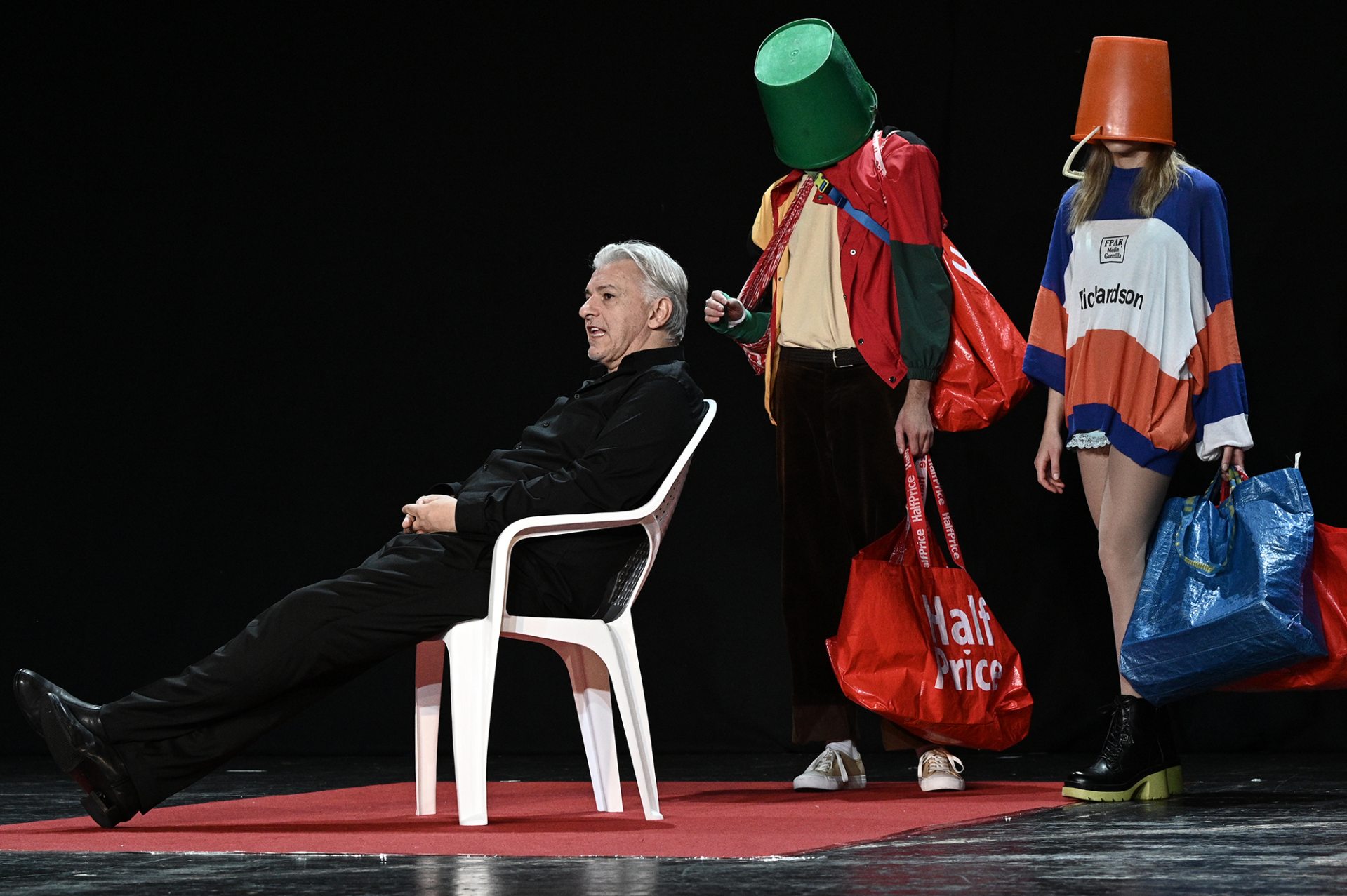 Alföldi Róbert kimeríthetetlen energiával lubickol a mizantróp színházi guru szerepében, aki mindössze két dologért képes lelkesedni: a palacsintalevesért és önnön nagyságáért. Brusconról eleinte nehéz eldönteni, hogy öntörvényű zseni vagy nárcisztikus szélhámos. Csillapíthatatlan szenvedéllyel ostorozza Utzbachot és a világegyetemet, benne a színház eredendően hazug illúziójával – egyszerre nevetséges, arrogáns és végtelenül karizmatikus jelenség. Ahogy a színlap is utal rá, tulajdonképpen egy nagy szakmai stand upot hallgatunk, ám a többi, szinte teljesen néma szereplő nem csupán statisztál Alföldinek – az ő pulzáló jelenlétük ad tétet, kontextust Bruscon hol sziporkázó intellektusú, hol komikus hatást keltő vagy épp visszataszító nagymonológjának.