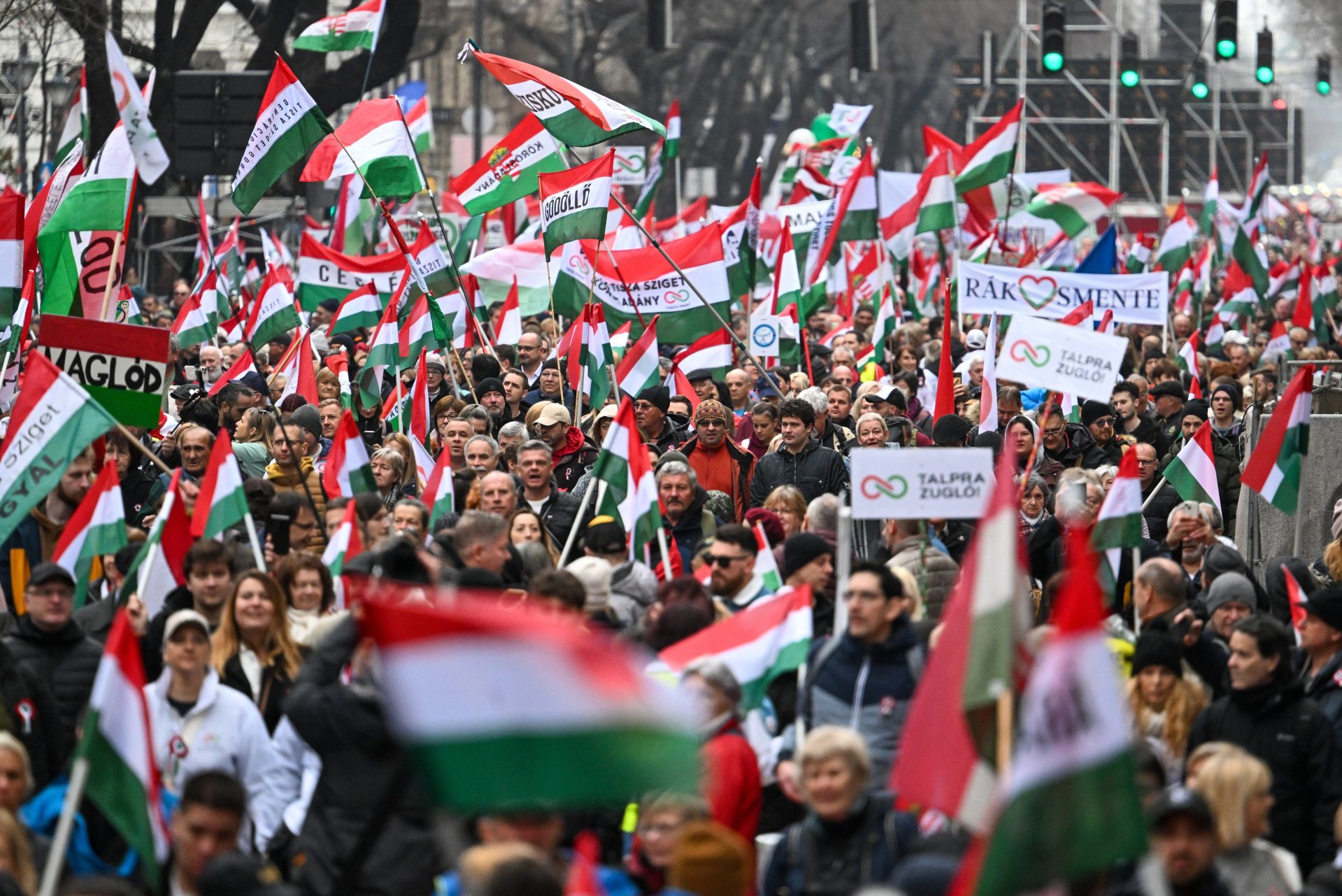Borítókép: Résztvevők a Tisza Párt a budapesti Andrássy úton tartott ünnepségén 2025. március 15-én / fotó: MTI/Illyés Tibor