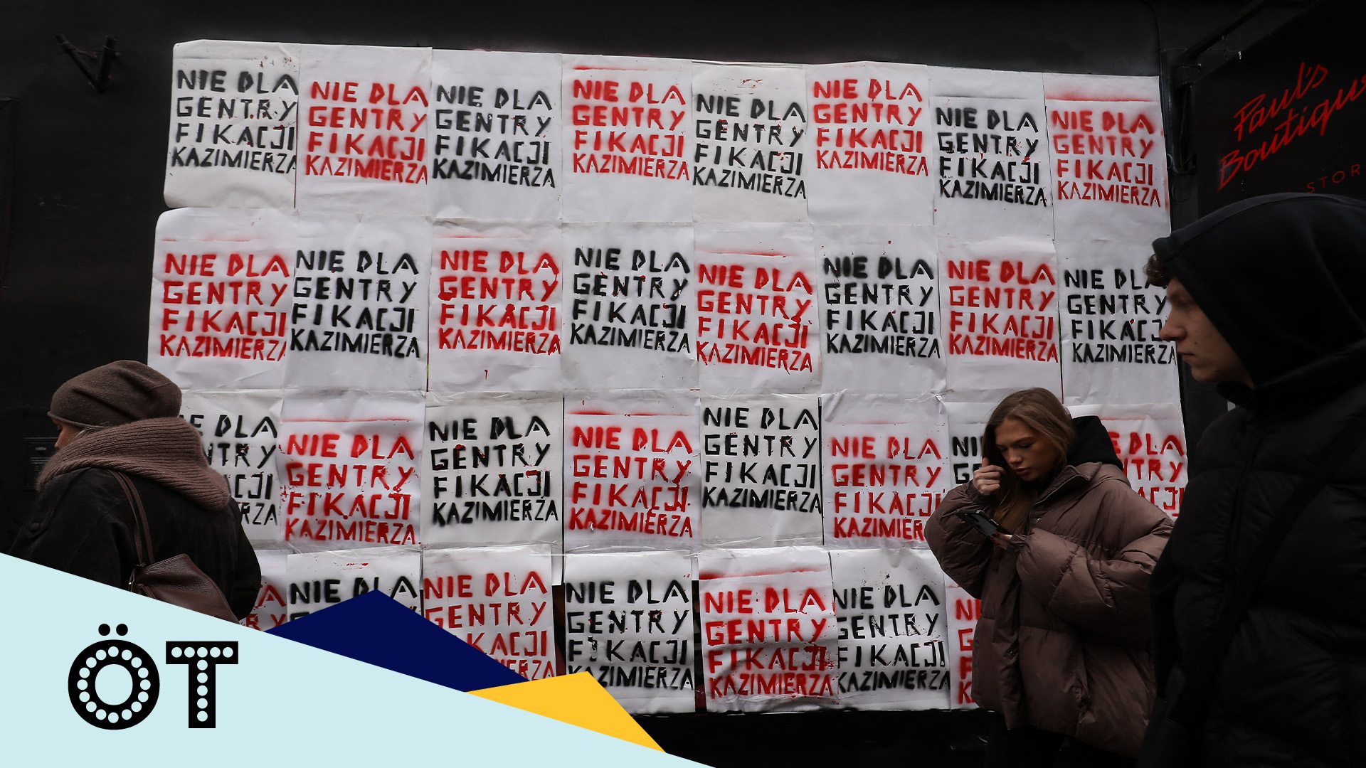 Borítókép: A krakkói Kazimierz dzsentrifikálása ellen tiltakozó falragaszok / fotó: Klaudia Radecka / NurPhoto / NurPhoto via AFP